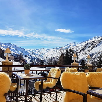 úchvatný výhled na okolní hory v Itálii, Švýcarsku a Rakousku z vyhlídkové plošiny na vrcholu Karlesjoch